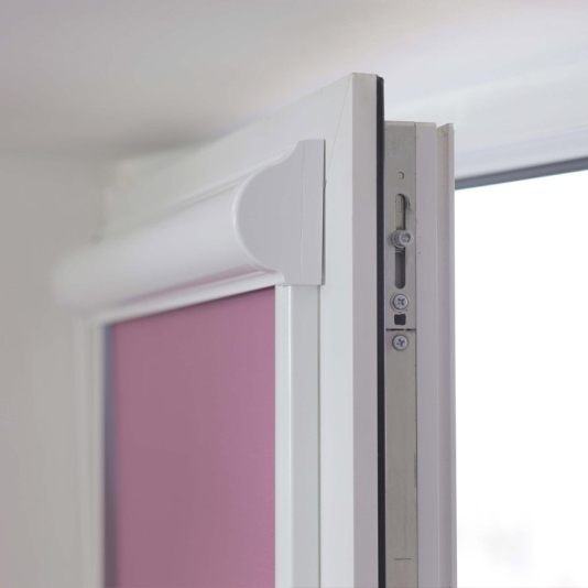Рулонные шторы на проем окна с карнизной планкой открытого типа