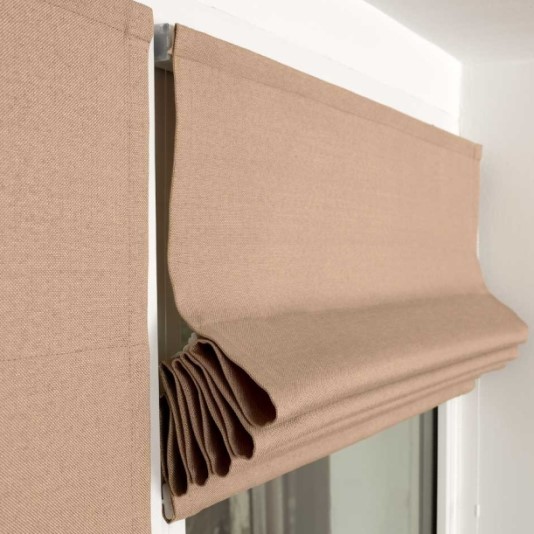 Изделия устанавливаются на оконный проем. Конструкция ROMA состоит последовательно прилегающих друг к другу ровных складках, в верхней положении и полностью перекрытый проем в нижнем. Верхний карниз римских штор невидим за полотном ткани